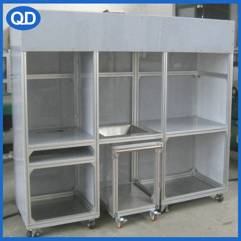 用材:支架采用國標電泳/歐標氧化 工業鋁型材制作,封板可以采用烤漆鐵板/不銹鋼板/有機玻璃/PVC板等制作,配上同系列鋁型材相關配件安裝。